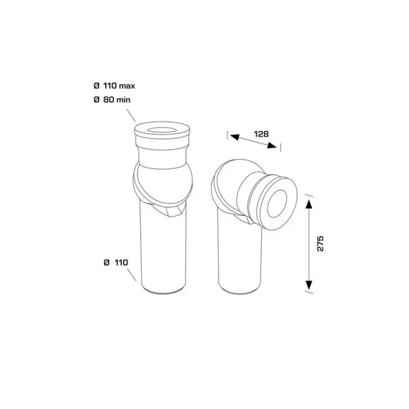 - Размери: F ø 80 – 110 мм / M ø 110 мм, височина 275мм